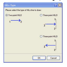 3. Select the Hi-Lo icon by clicking on it. The Hi-Lo Type dialog opens, select the method you wish to use to draw the Hi-to-Lo arrow. Two point is a very simple digitize a Hi-to-Lo point in the area. The Three point methods are identical in steps they drains are just the opposite of each other. The arrow indicates direction of drain. In any case points 1 and 2 are the base or High point and point 3 the Lo point.