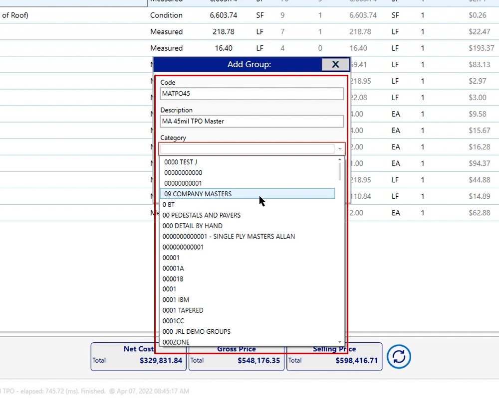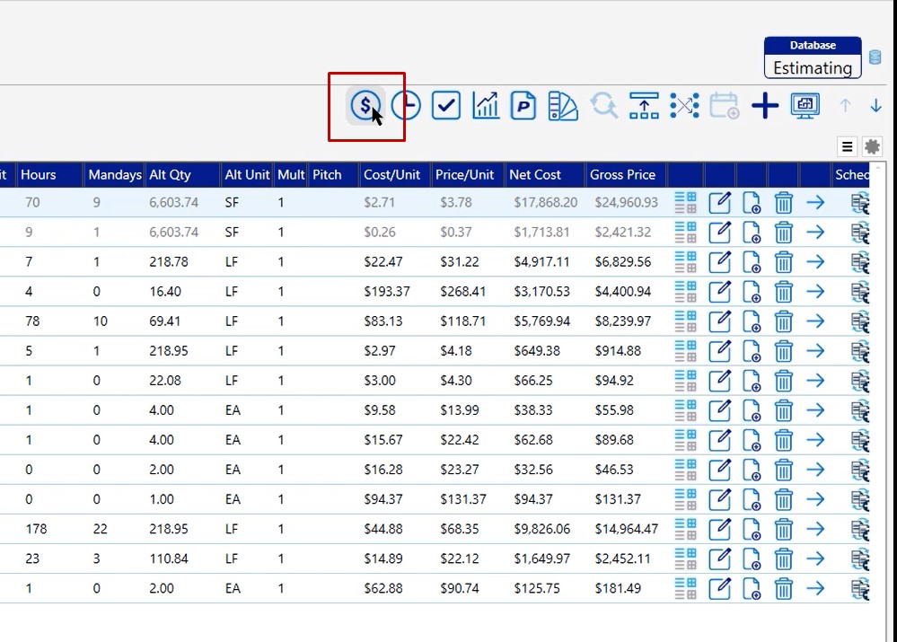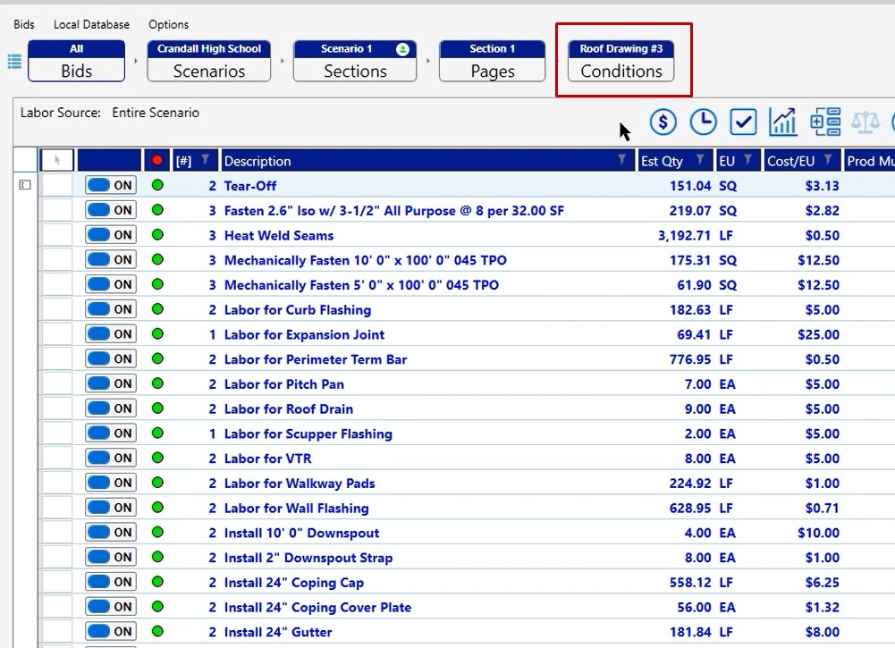 Once you have your projects set up and you’ve modified all of the properties of the conditions, the next thing you want to do is go to your pricing screen. On the pricing screen you can verify that all of the material is being ordered and priced the way that you want to see it and has the correct coverage rates.