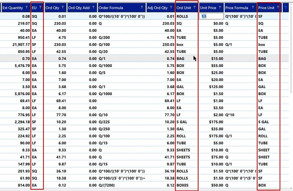 On your screen you will see the estimated unit, order unit, and if you scroll over at the bottom, you will see your pricing.