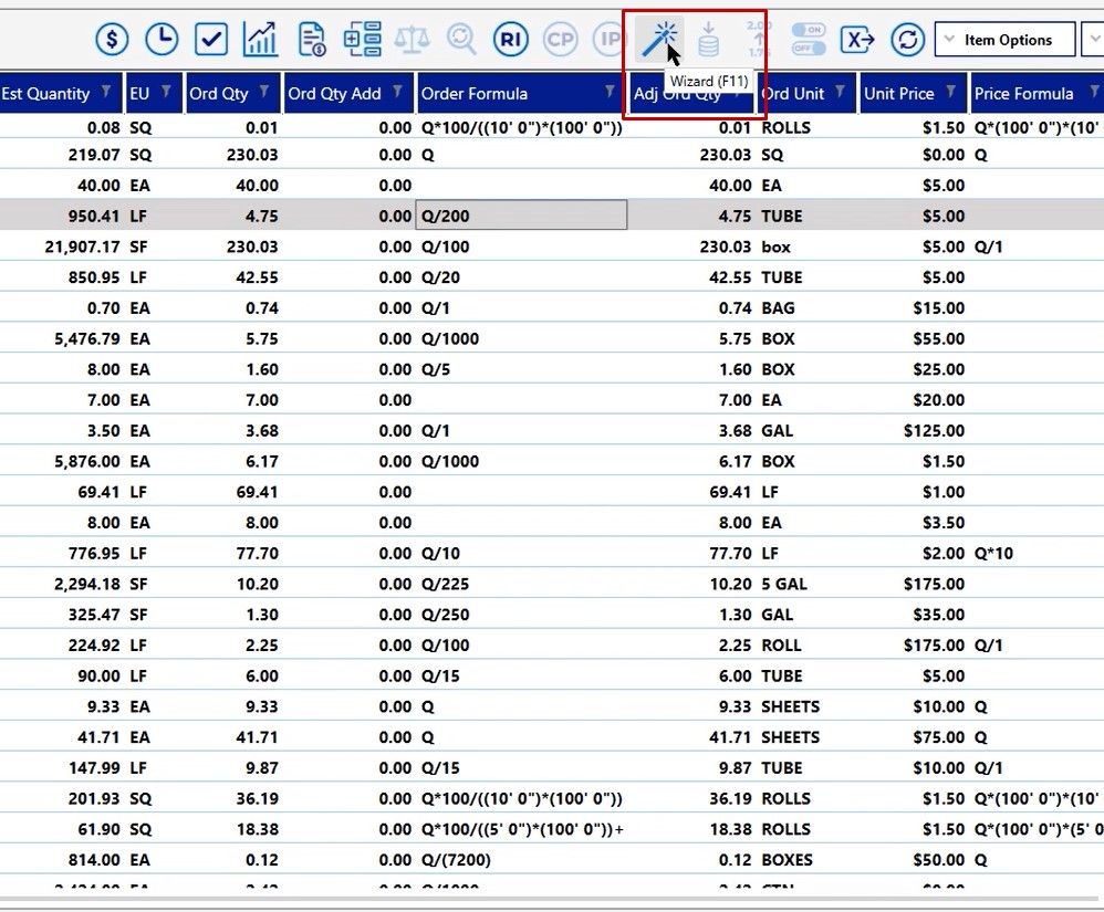 If you do need to change some of the information, most of the items you’ll need to change you can left click on and choose the Wizard Tool and that will allow you to go in and change the order unit and pricing.