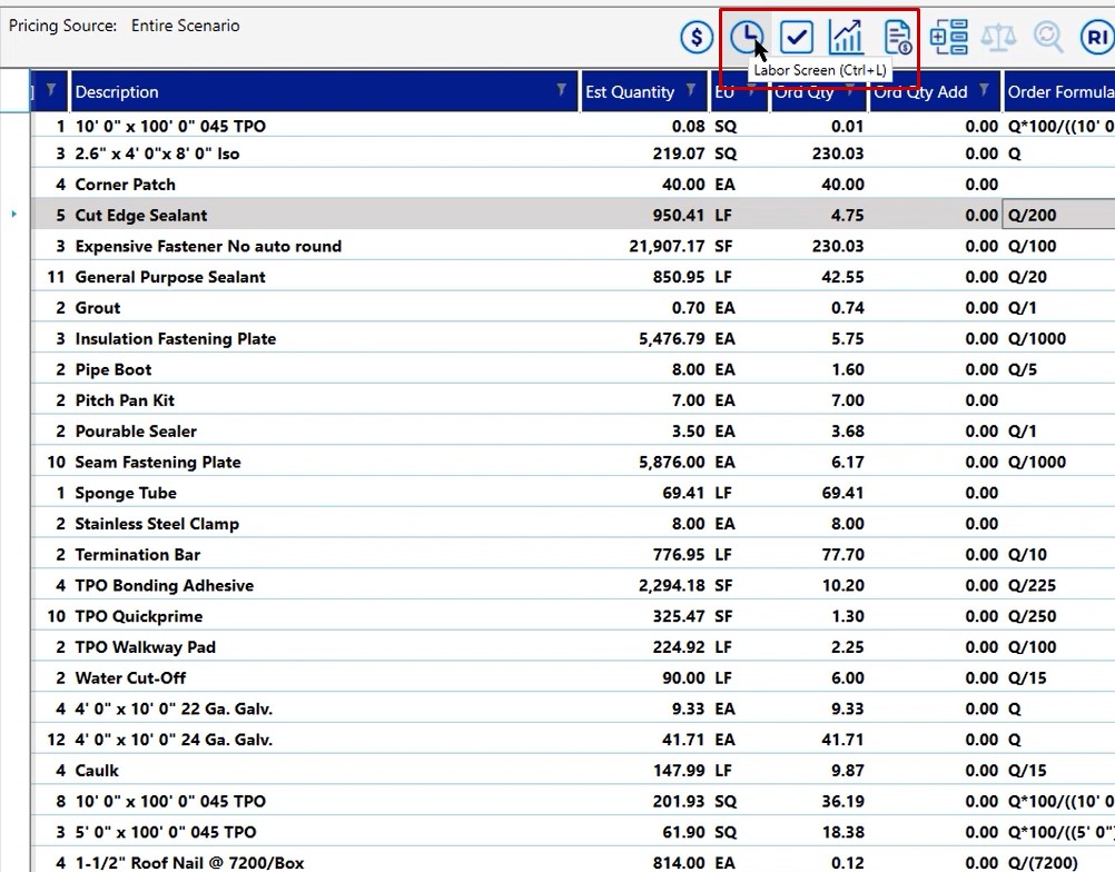 Once you finish up with your pricing screen, click on the labor screen to open it