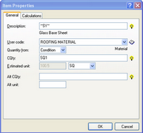 Clicking the Condition Properties icon () or pressing () will open the Condition Properties dialog for the condition being quantified in the drawing screen as seen below.