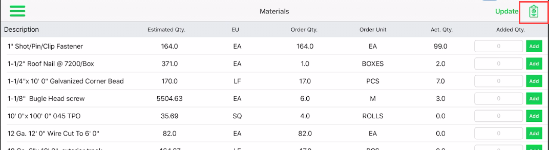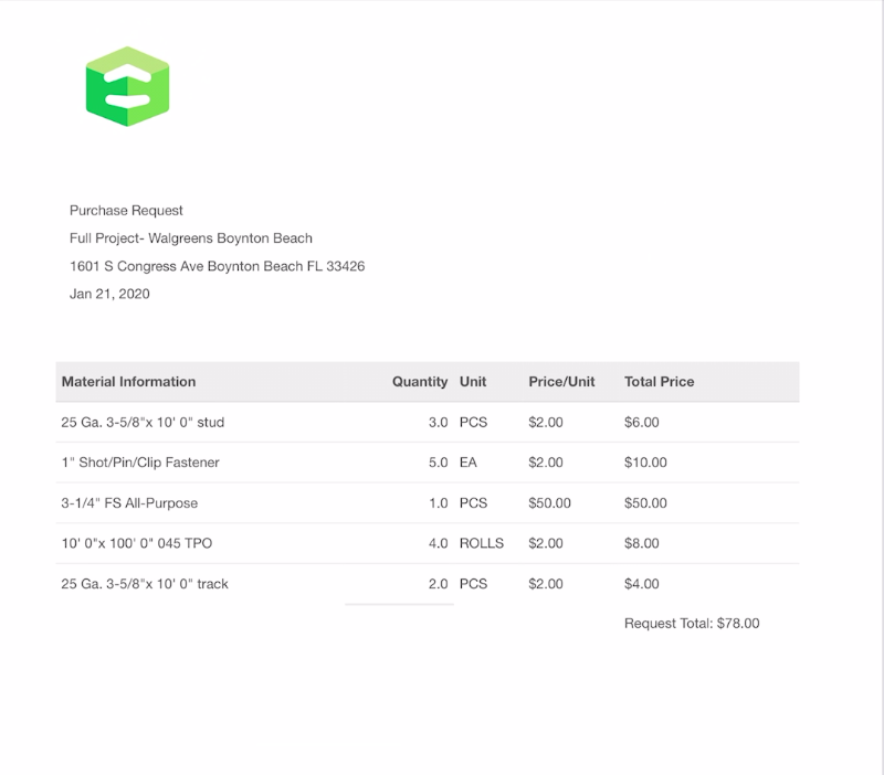 Purchase Requests – EDGE On Site can generate a purchase request! Users can select from the material list and add quantity, requesting for field consumption to be approved and allocated from accounting. A PDF file will generate and store in the project’s document control system. Each line is editable to allow for adjustments and price changes.