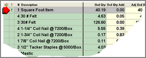 This screen appear when there is a question concerning how much of something comes prepackaged. We forced the issue here by telling The EDGE that we estimate and order by the LF but the product comes in a box. The EDGE wants to know how many LF are in a box. This screen does not appear when the units match.