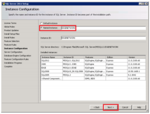 9. Delete the name “SQLExpress” and type in a new name. We highly recommended using the Instance ID “EDGENETWORK”