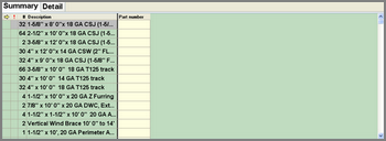 Pictured above is the Part Numbers screen of the Pricing screen. The field(s) that appear in Green are being imported from the estimate. They can not be changed, if you have to change one of these fields you have to go back into the job to do it. All the fields that appear within the yellow area can be edited in this screen. Just click in the field and start typing. If you make changes here be sure to save the changes back to the database or else they will be lost.