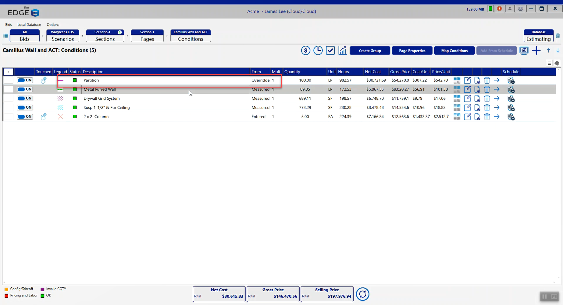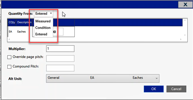 ii. Measured: Measured: means that you went out to the takeoff screen and drew some shapes for this condition to give it its quantity here.