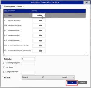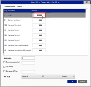 g) To fix the Override issue: either go to the takeoff screen and draw this extra 100, or switch this to entered and put the total right in there.