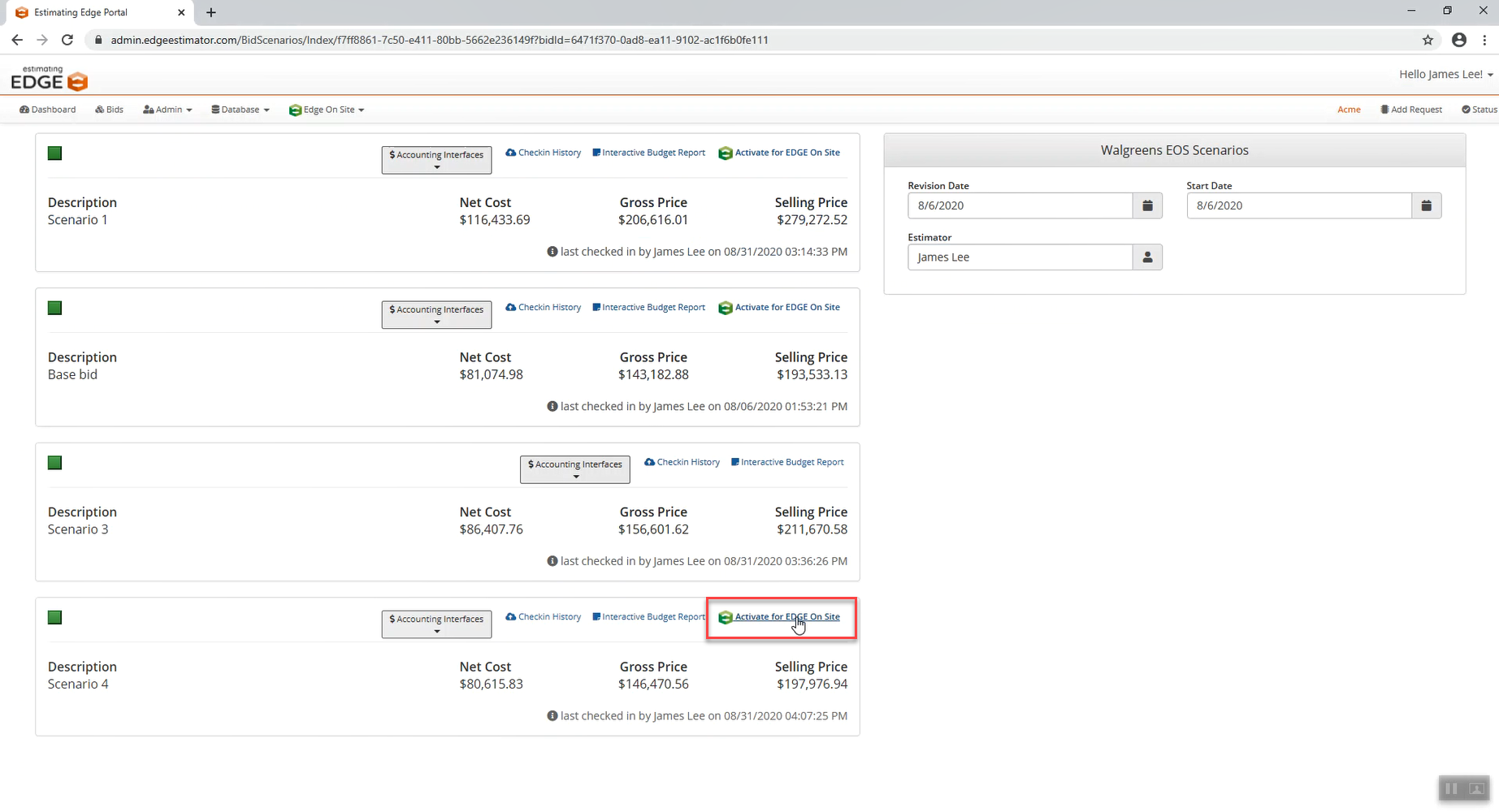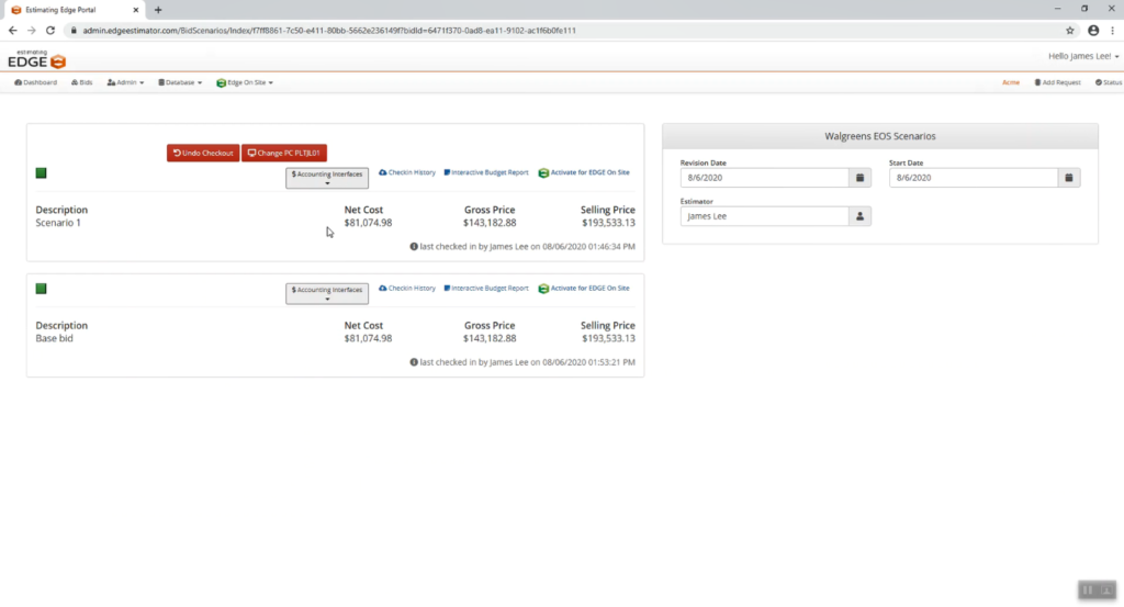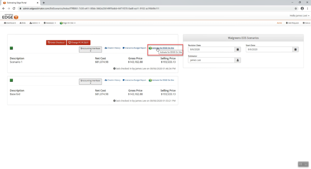 - Note: Activating a project takes place on an individual scenario, not on the entire bid. Do not activate an entire bid. This is important because parts of the job that you want to track may be located in a separate scenario.