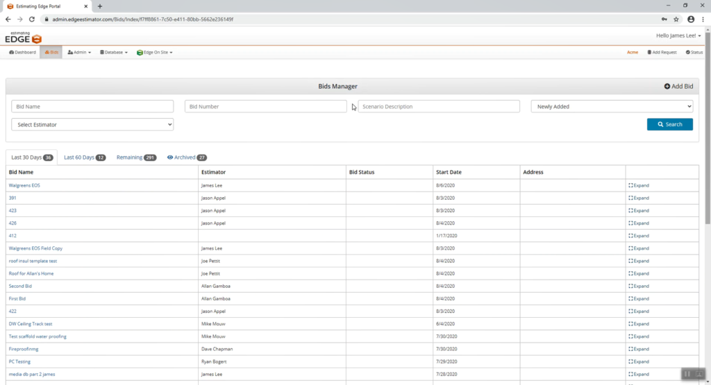 - Note: The user has the ability to search for a specific bid or look in a specific tab to better identify the bid.