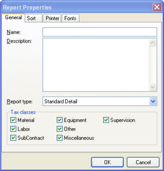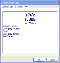 Fields – The Fonts Tab as shown above displays the field names, fonts, color and size of the fields to be printed with the currently selected or newly created report. If you wish to change a font, style, size or color all you have to do is take your mouse and click on the title of the field you want to change.