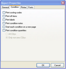 Condition Detail Report Properties – The check boxes are more or less self explanatory. If you check the box then in addition to what is normally going to print on a Condition Detail report you will also print whatever you have checked. The Condition Detail report is a very detailed report it can easily consume a quantity of paper when it begins to print.