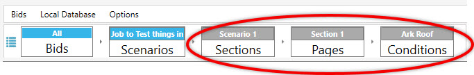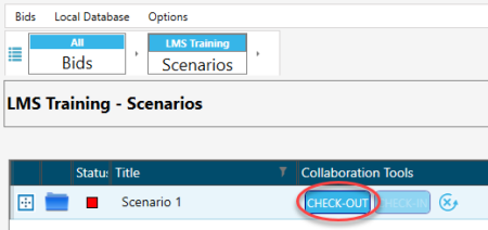 - You can open a bid that has not been checked out; however, it will be in a read-only mode (view only). You can tell if a bid hasn’t been checked out by the Scenario, Section, etc., breadcrumbs changing color to grey.