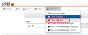 Adding a By Title Task will be done on the Tasks Manager drop-down for EDGE On Site.
