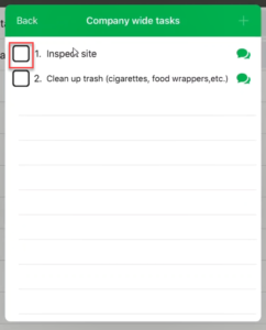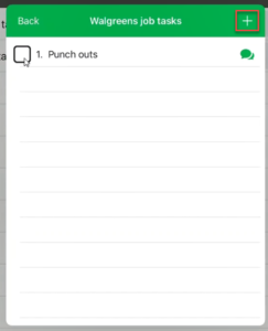 Note: Using By Project Tasks and By Title Task, you have the availability to add a task to this list that is not available for Company Wide Tasks. Click on the + in the top right-hand corner. An example would be if something came up on the job site you didn’t anticipate, you can click create “+.” Once you have created the tasks give it a check. The information will be sent back to the Admin Portal to notify the office personnel.