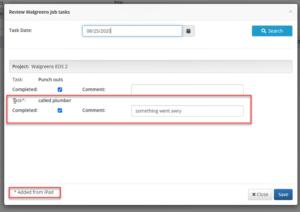 Note: New tasks that are added by the iPad have an * next to it.