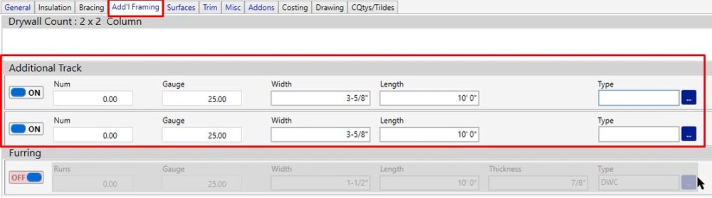 Add’l Framing Tab – Additional Track