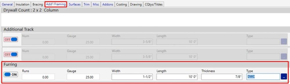 Add’l Framing Tab – Furring