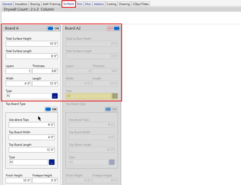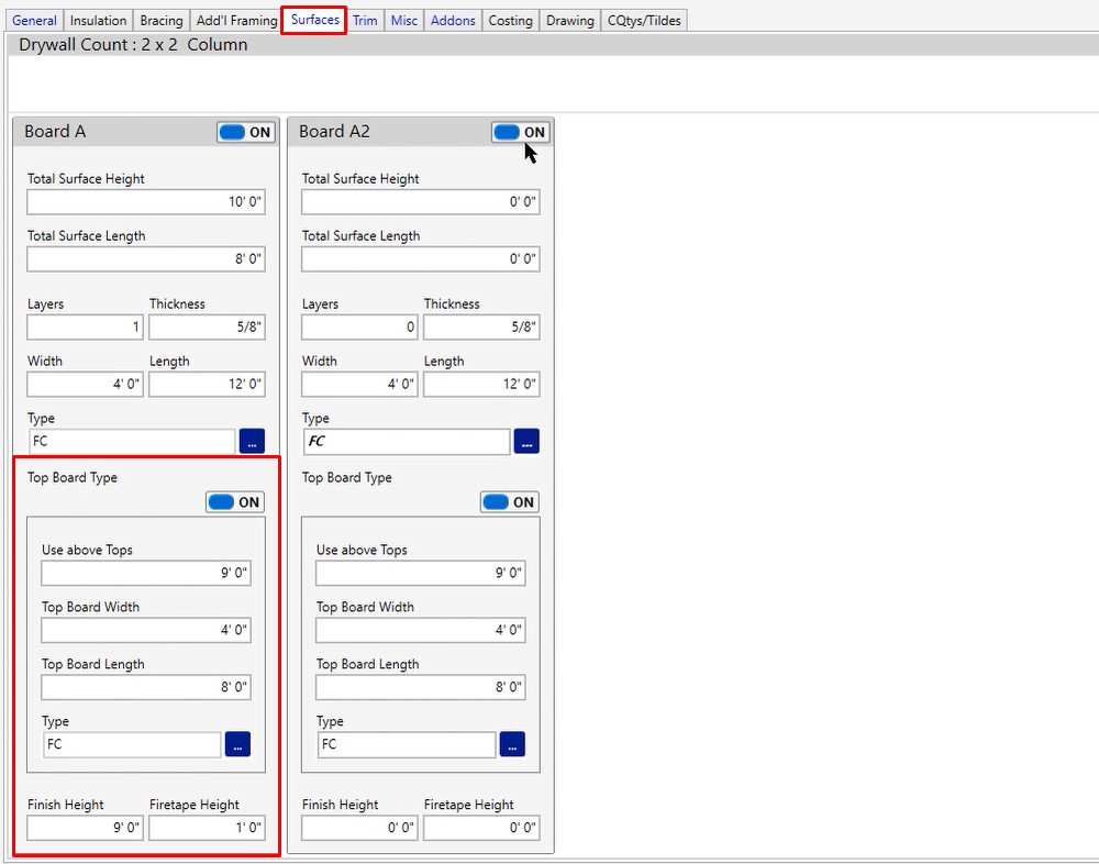 In most cases, you would only turn board A2 on if you were going to be using a different style of board. If you weren’t going to be using fire code, maybe you were going to be using mold resistant or moisture resistant. If you were going to be using dense deck or some type of sheathing. Any of those options, that’s when you would typically turn board A2 on.