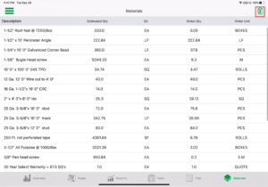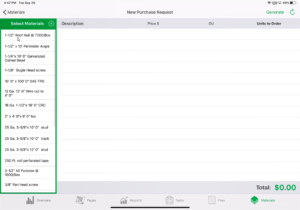 - Once all material has been added and units to order have been inputted, tap generate.