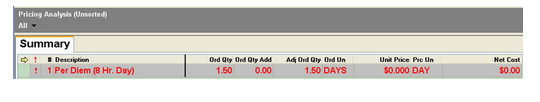 Pictured below are two line items both are flagged, the first two items are flagged for missing pricing dates and the third one is flagged for missing a price