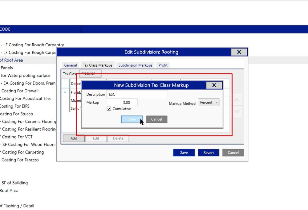 - Click on tax class markups tab