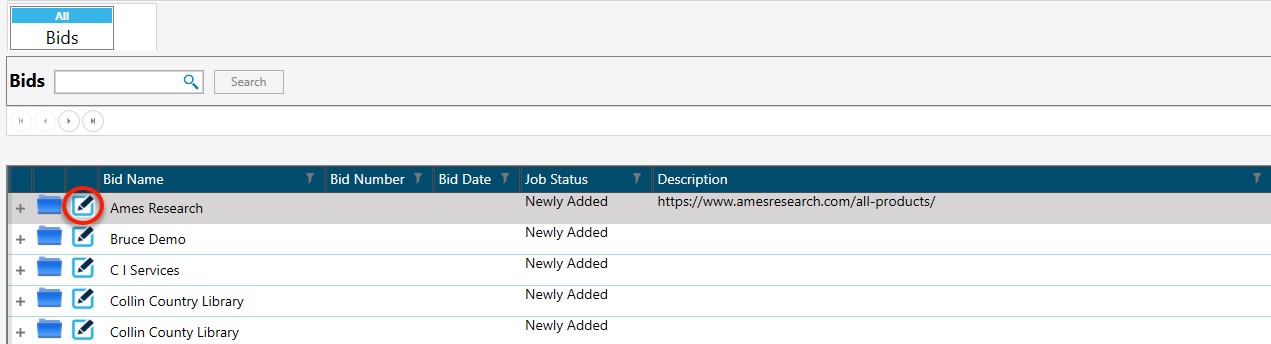 - On the Bid Grid screen, click the edit icon.