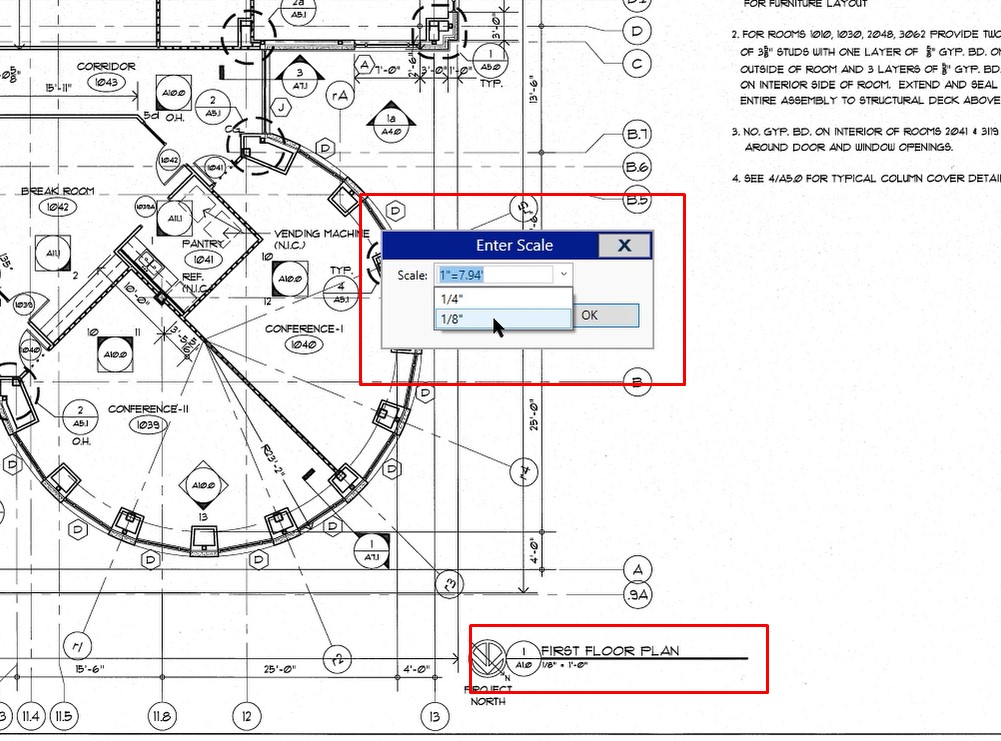 In this example, you’ll notice that your scale was supposed to be 1/8″ on your plan, however, based on your measurement, the scales coming in different. The rule of thumb is that if you’re .25 above or below the scale you’re trying to achieve, click the drop down and choose the correct scale.
