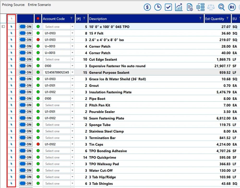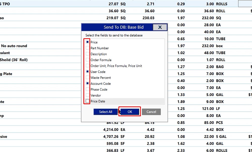 If you have pricing account codes, user codes, any of that type of information that you’ve made modifications to, when you’re on the pricing or labor screen, you can simply mark the item in the white checkbox on the left hand side of the screen.