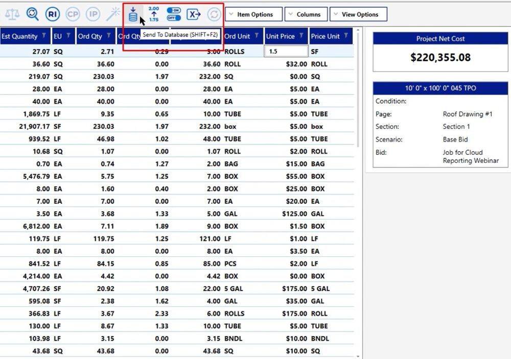 Let’s say that you’re inside of a project and you get an updated pricing list or you go over your labor production and you want to take all of the information in this current project and save it to the database. This way, the next project you create where you’re using a very similar setup or the same product, it’s going to pull that information in for you.