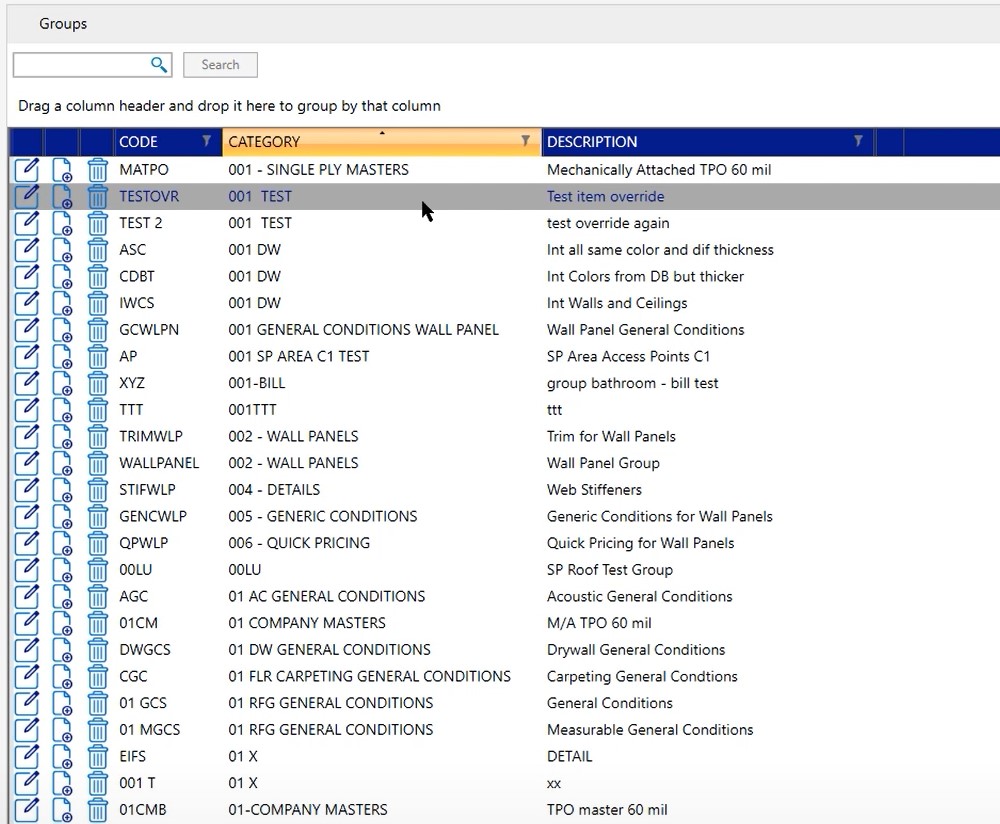 Groups are going to be the masters that you’ve saved back to the database or the groups that you’ve saved. In this case, you’ll notice that we have quite a few out there because we’re working in a test database. However, if you wanted to make any modifications to this, there’s a couple of different views that you’re going to be seeing – this is your main view.