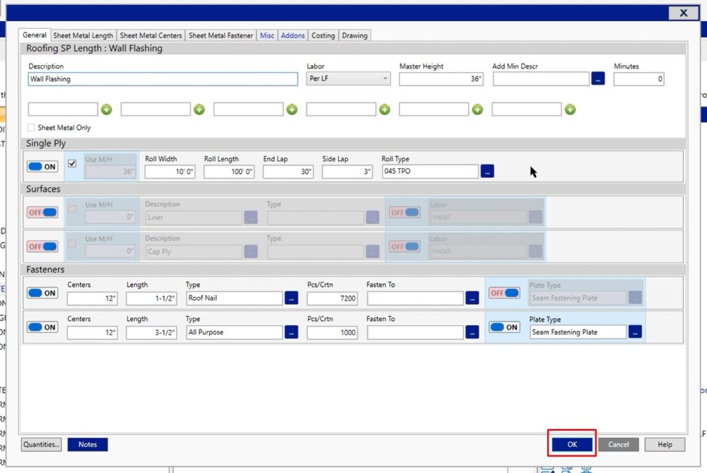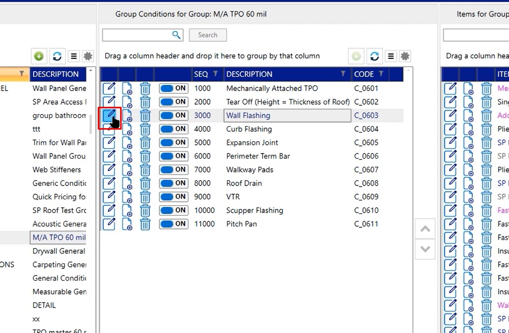 For example, let’s say that you wanted to adjust the default starting height of your wall flashing. To do that, you’re going to click the edit button on your wall flashing condition