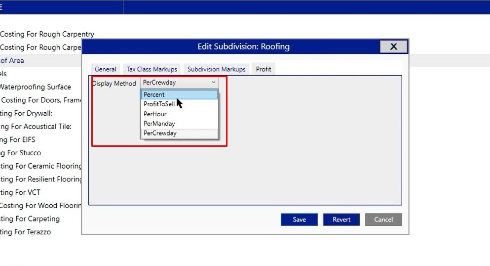 Subdivisions is where you’re going to go in and make modifications to the different breakouts that you have on your recap screen. This is where you’re going to control any markups you have.