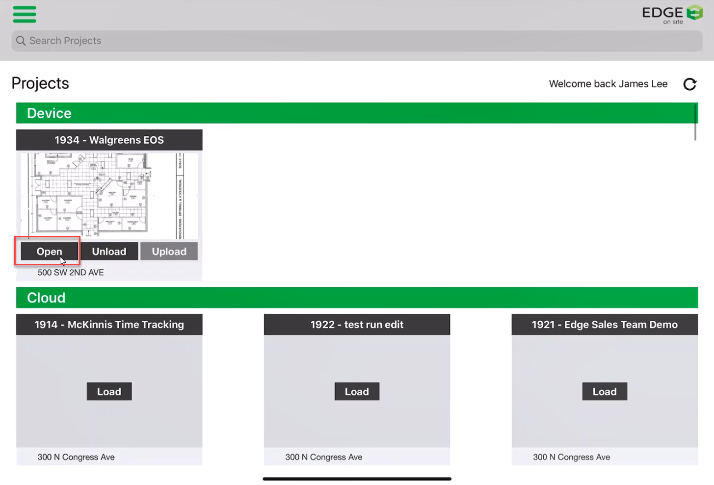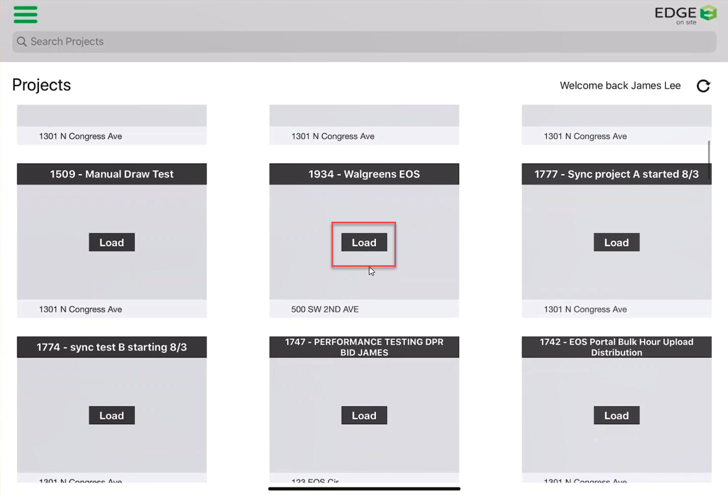 - Search through your Projects. Once you have found the project, tap Load.