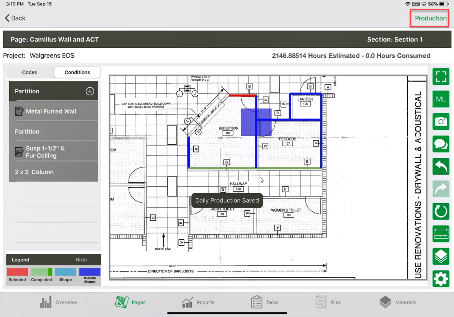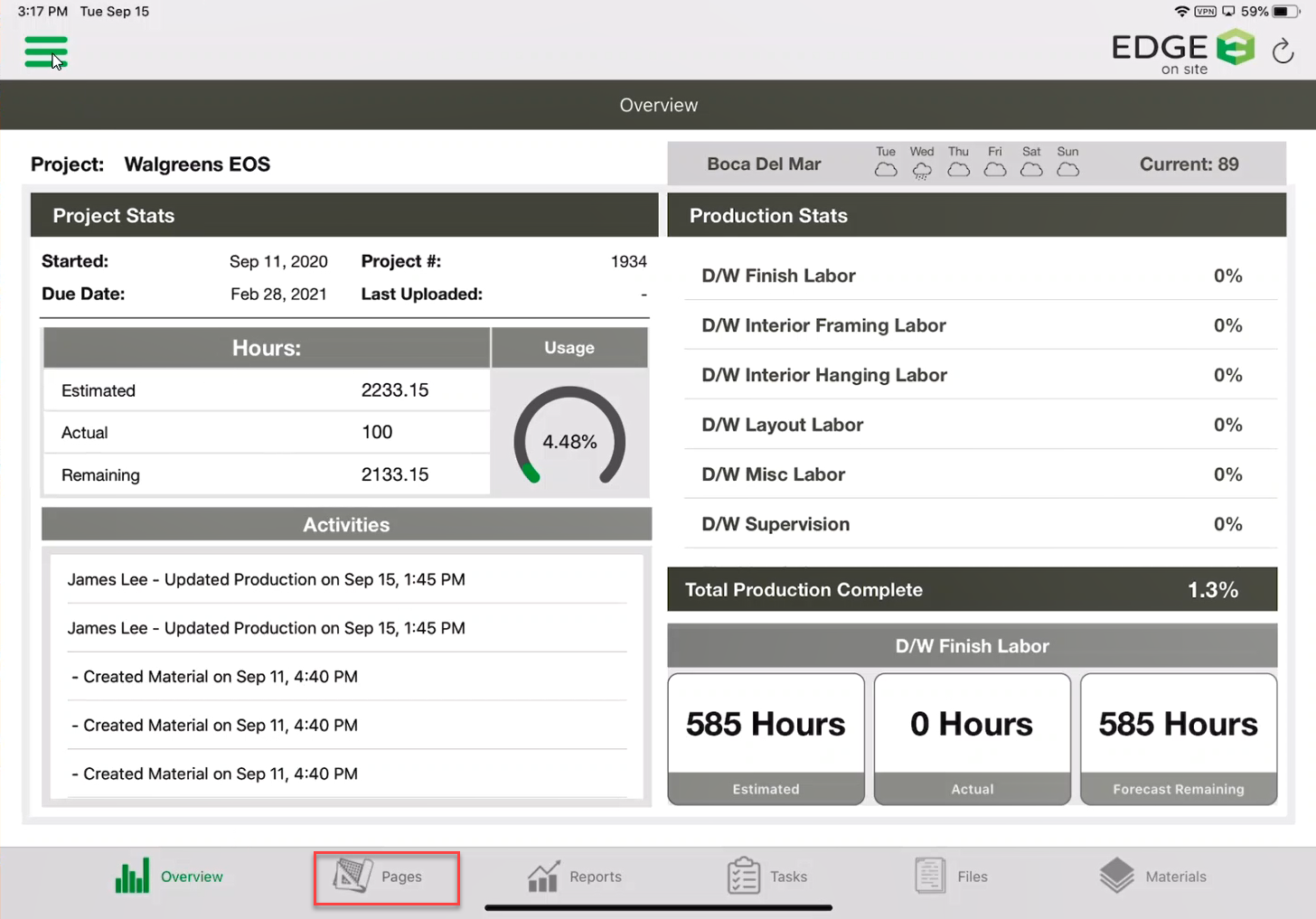 - Once the production is uploaded, you will appear back at the Overview Screen. Tap on Pages.
