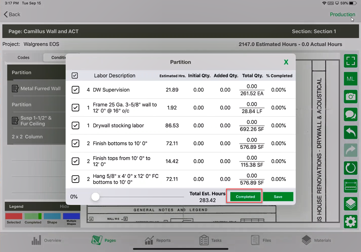 - Now, this wall is at 100% completion, and let’s say, oops, this is a mistake. Actually, meant to mark this 100% completion on the wall across.