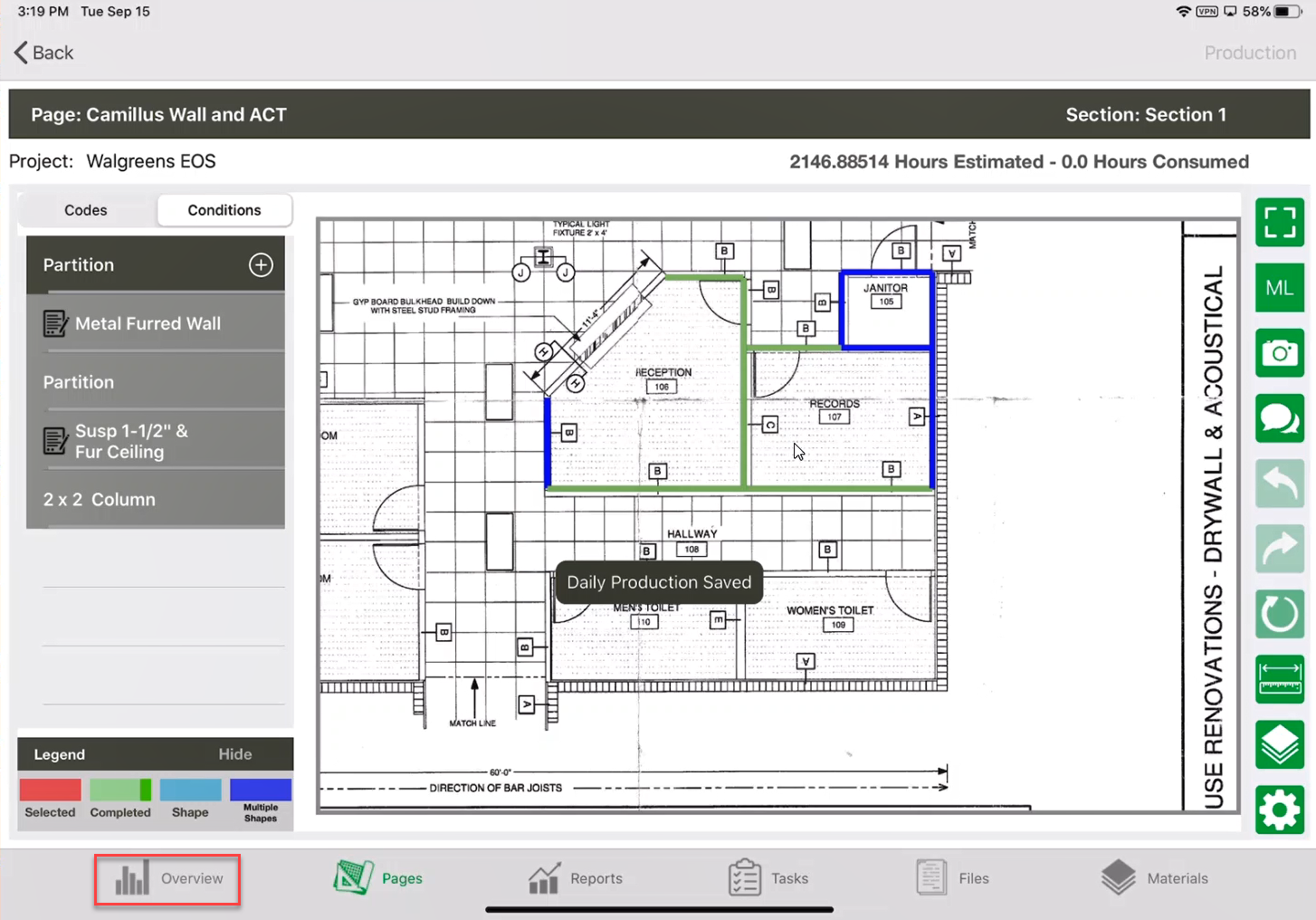 Note: Unfortunately, because the production was saved there is not an easy undo button - Tap on Overview.