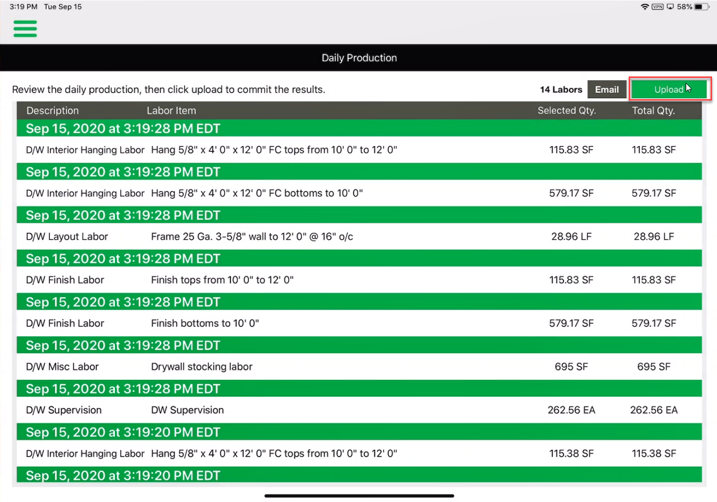 - To get rid of that saved production, but not uploaded production, tap Unload.