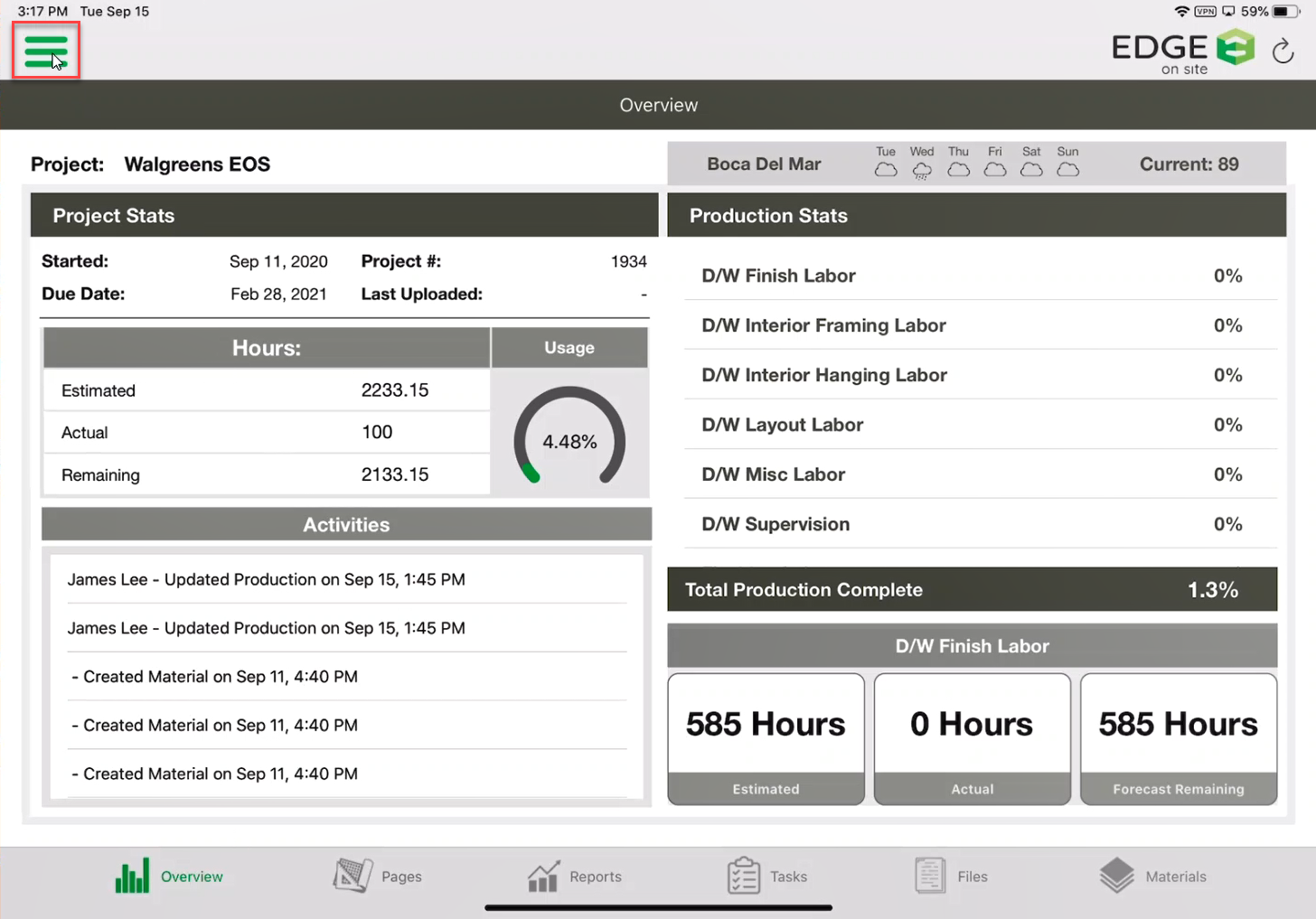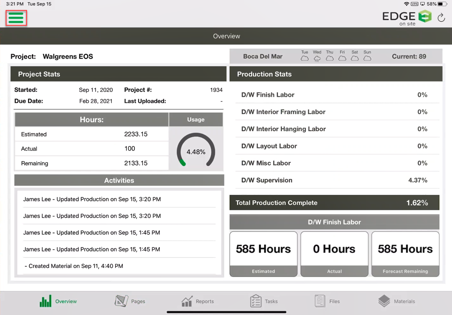 - On the Overview Screen, tap the hamburger button.