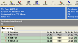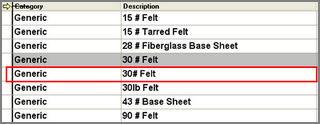 Where Replace Item is active this function allows you to replace one item with another. It is extremely easy to use. Why would you want to replace an item. Let’s say we have an item 15 pound felt, most of us have seen or used that at one time or another. Let’s further say that after estimating a job you go to the pricing screen and you find among all you other lines the following: