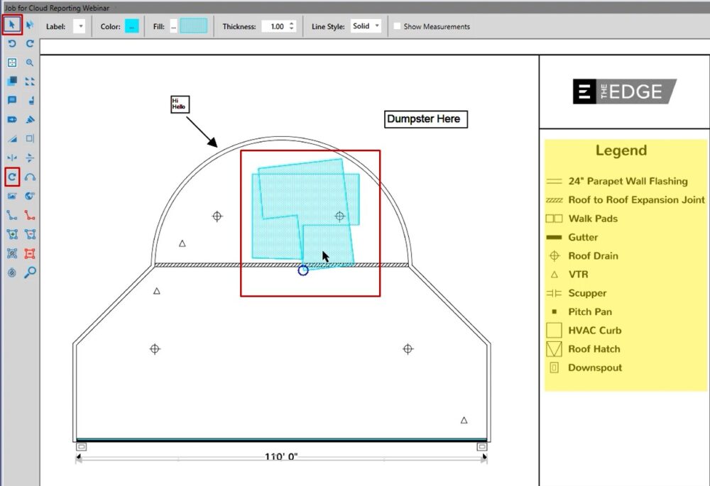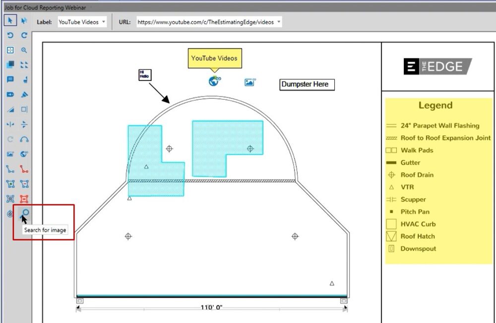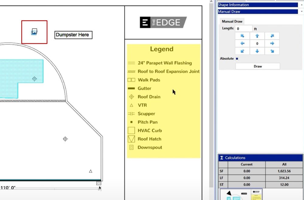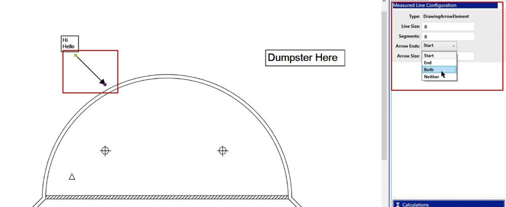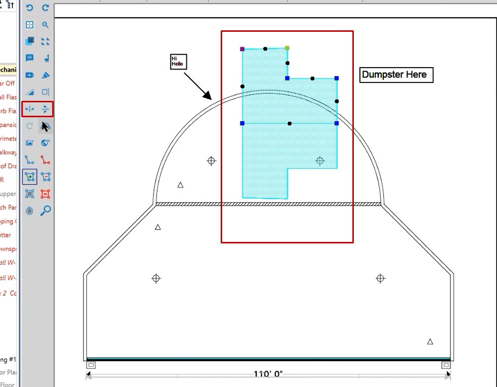 In this case, if you wanted to place a dumpster, you could left click on the annotation, and then when you left click on your take off screen you’ll be able to place that.