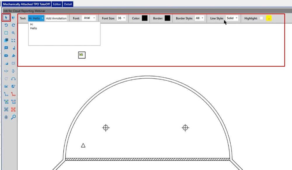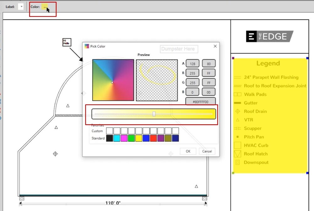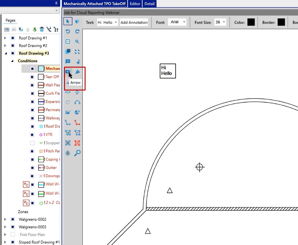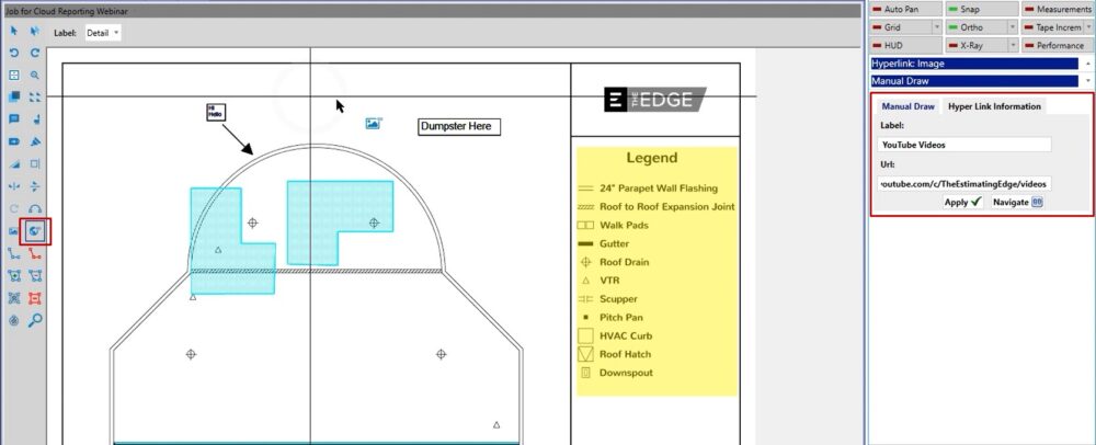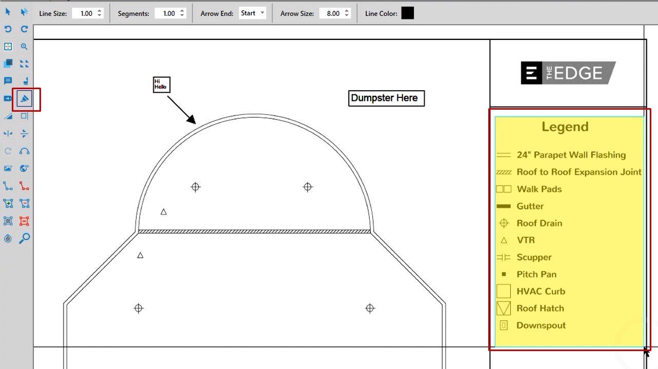 In this case, if you wanted to place a dumpster, you could left click on the annotation, and then when you left click on your take off screen you’ll be able to place that.