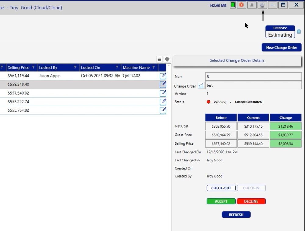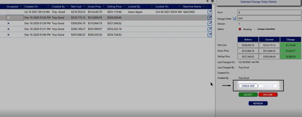 Here, you will notice that you have all of your change orders available. You do need to make sure that with these change orders, if you want to report the most current information and it’s a change order that has not been accepted, you do want to make sure that that change order is checked in.
