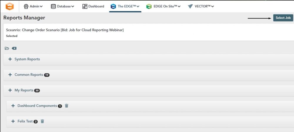 Once you click view reports, the reports manager window will open. Click select job