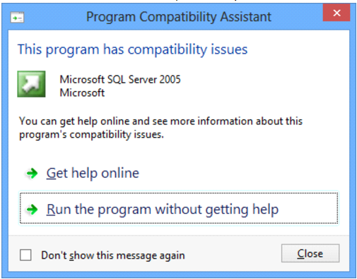 - When the installer reaches SQL Express 2005 you will receive the following message