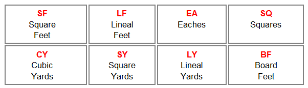 Unit Price – How much the item costs per unit per each: i.e. each, square feet, lineal, etc.