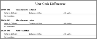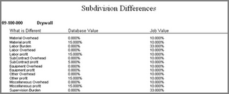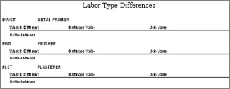 Below are examples by Labor rates, Subdivisions and finally Tax Classes as to what a Job/Database Comparison Report might look like.