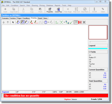 1.Click the Drawing Screen tab. The Drawing screen opens. The drawing area is grayed out due to the fact that NO scale has been set.