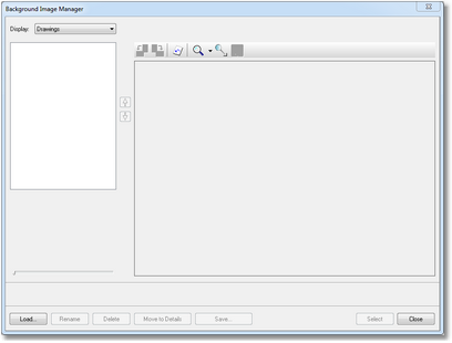 3.This will open the Background Image Manager. If you have previously loaded background images you can skip to step 11, otherwise continue. Click Load in the lower left corner of the window, the Load Background Image dialog opens.