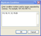 Click Condition | Replicate again the dialog open. Read the comments at the top of the dialog to see the different ways information can be entered.